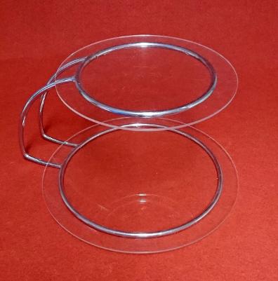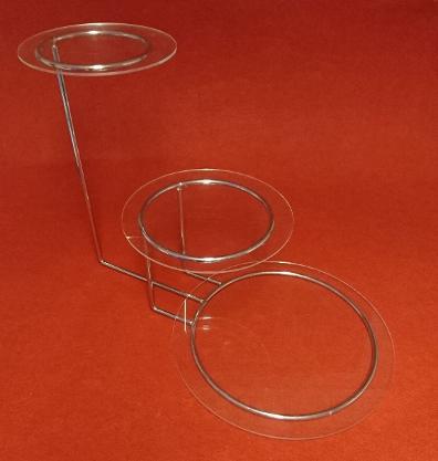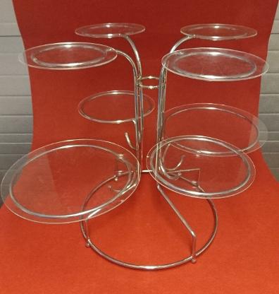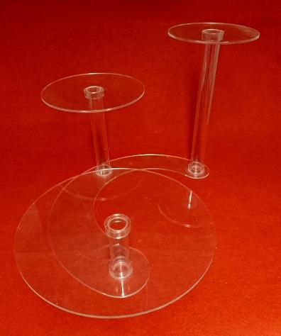 Beskrivning: Tårtställning med tårtplattor i genomskinlig akrylpast.