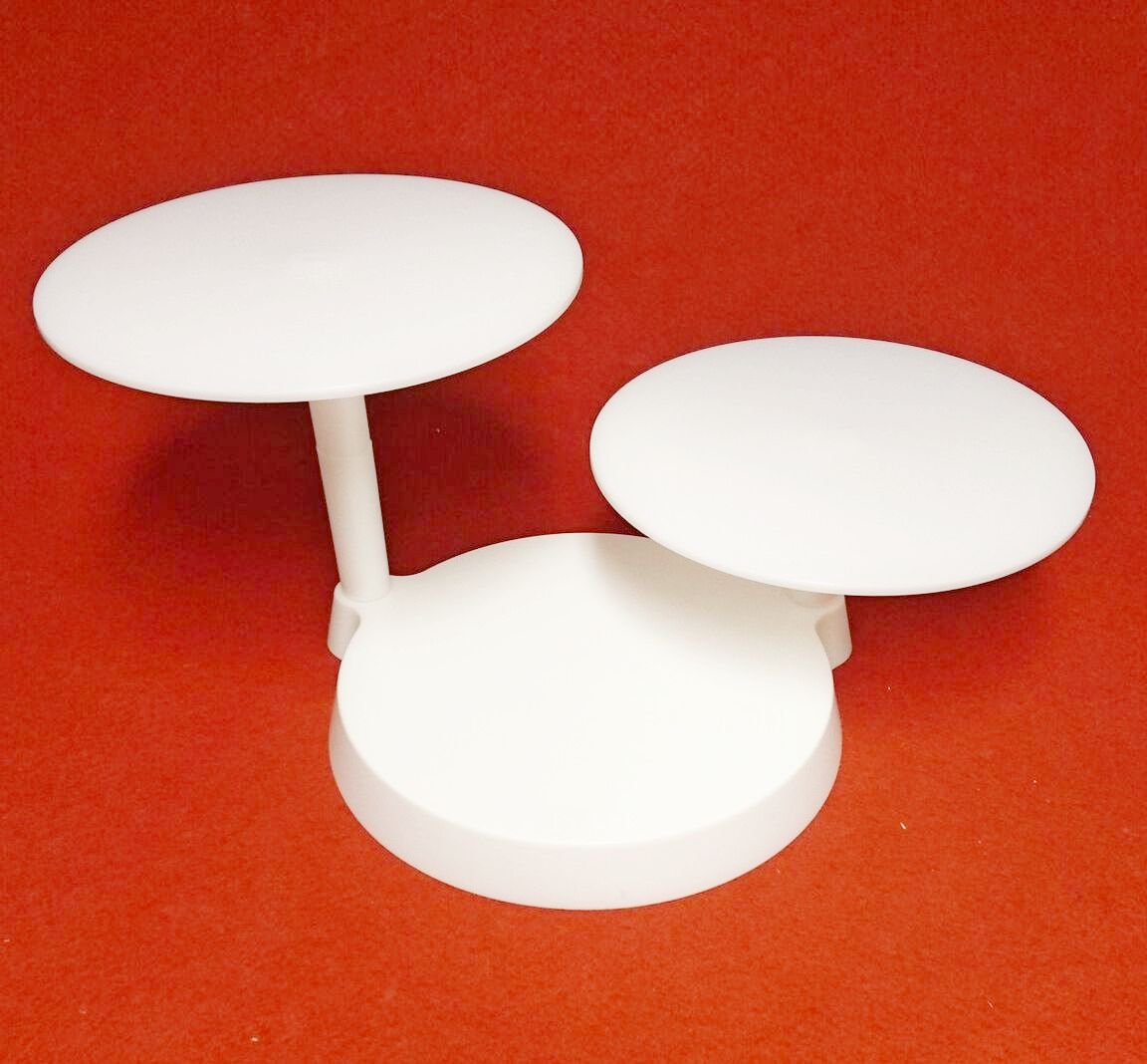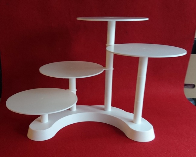 Beskrivning: Tårtställning med tårtplattor i vit plast